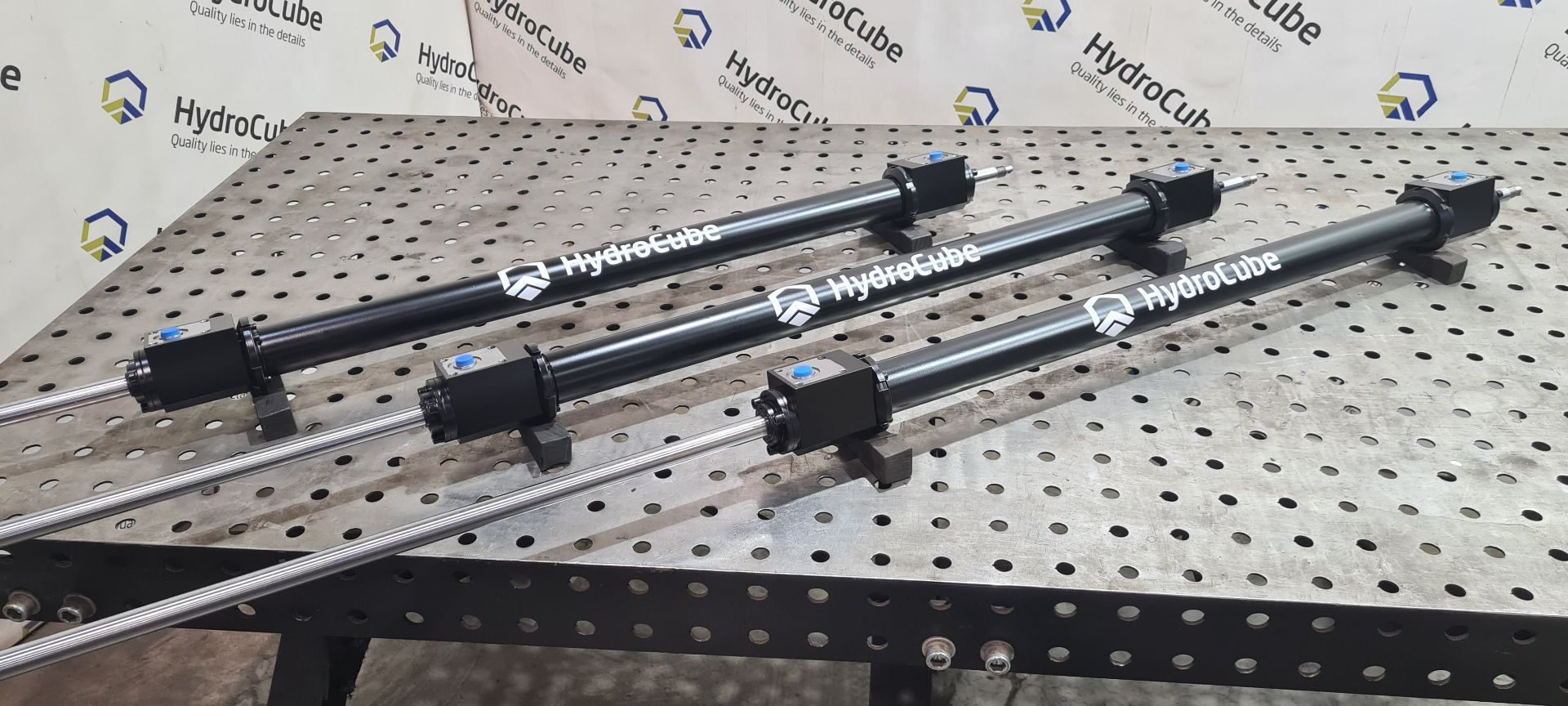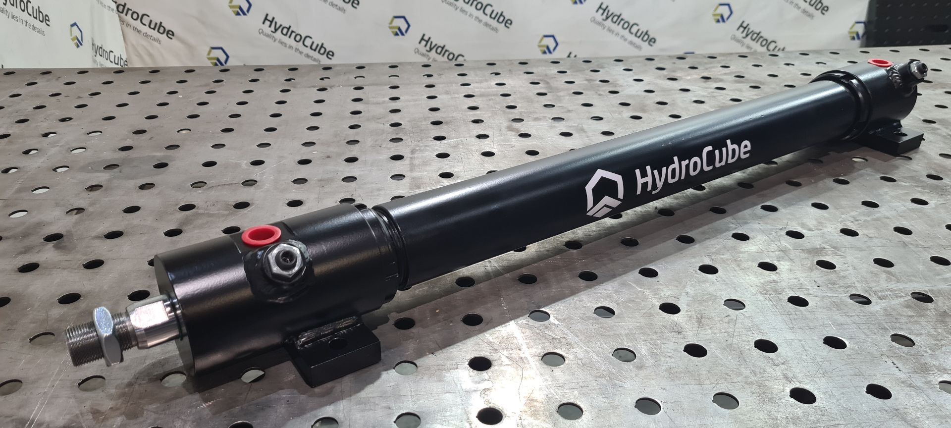 Сам по себе гидроцилиндр довольно необычен: он компактный, но при этом обладает большим вылетом штока. Подача гидравлической жидкости осуществляется через торец задней крышки. Фланцы, предназначенные для прикручивания крышек, фиксируются стальными полукольцами, которые устанавливаются в пазах гильзы.