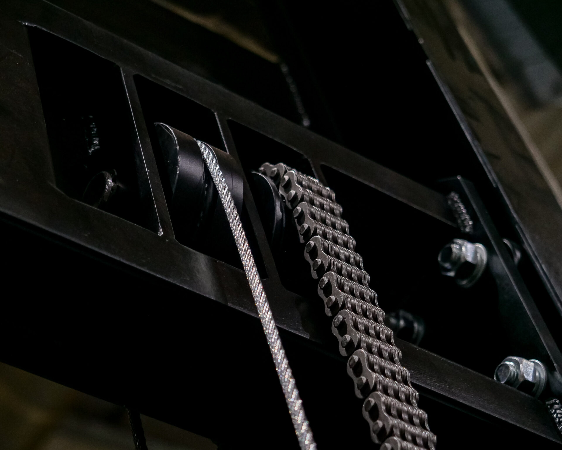 Изготовленный нами подъёмник движется за счёт усилия, создаваемого гидроцилиндром. Максимальная высота, на которую поднимается кабина, – 5,2 метра. Конструкцию окружает покрытая сеткой шахта высотой 8 метров.