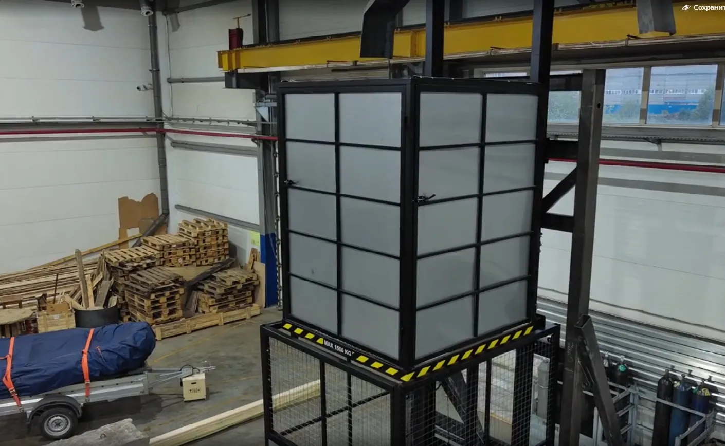 Наши постоянные клиенты заказали у нас консольный подъёмный стол для перемещения грузов весом до 1000 кг. Заказ также включал в себя ограждения из сетки и кабину.
