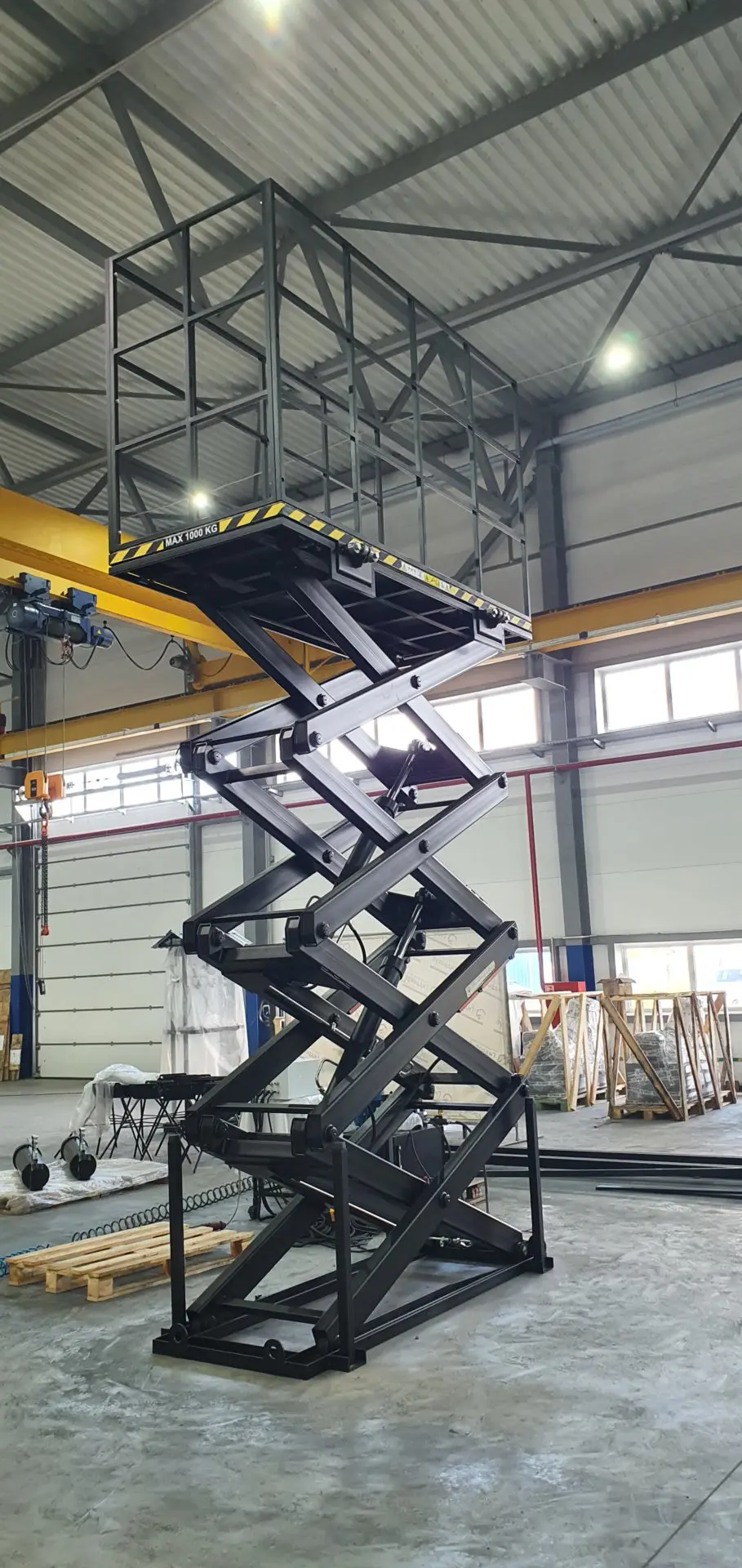 Представленный ножничный подъемник предназначен для использования в пищевой промышленности — он задействован в одном из процессов выпуска мясных изделий. Как происходит работа: в цехе на первом этаже на платформу погружают колбасные рамы с продукцией, а затем отправляют на второй этаж для продолжения технологического процесса. Само подъемное оборудование установлено в шахте.