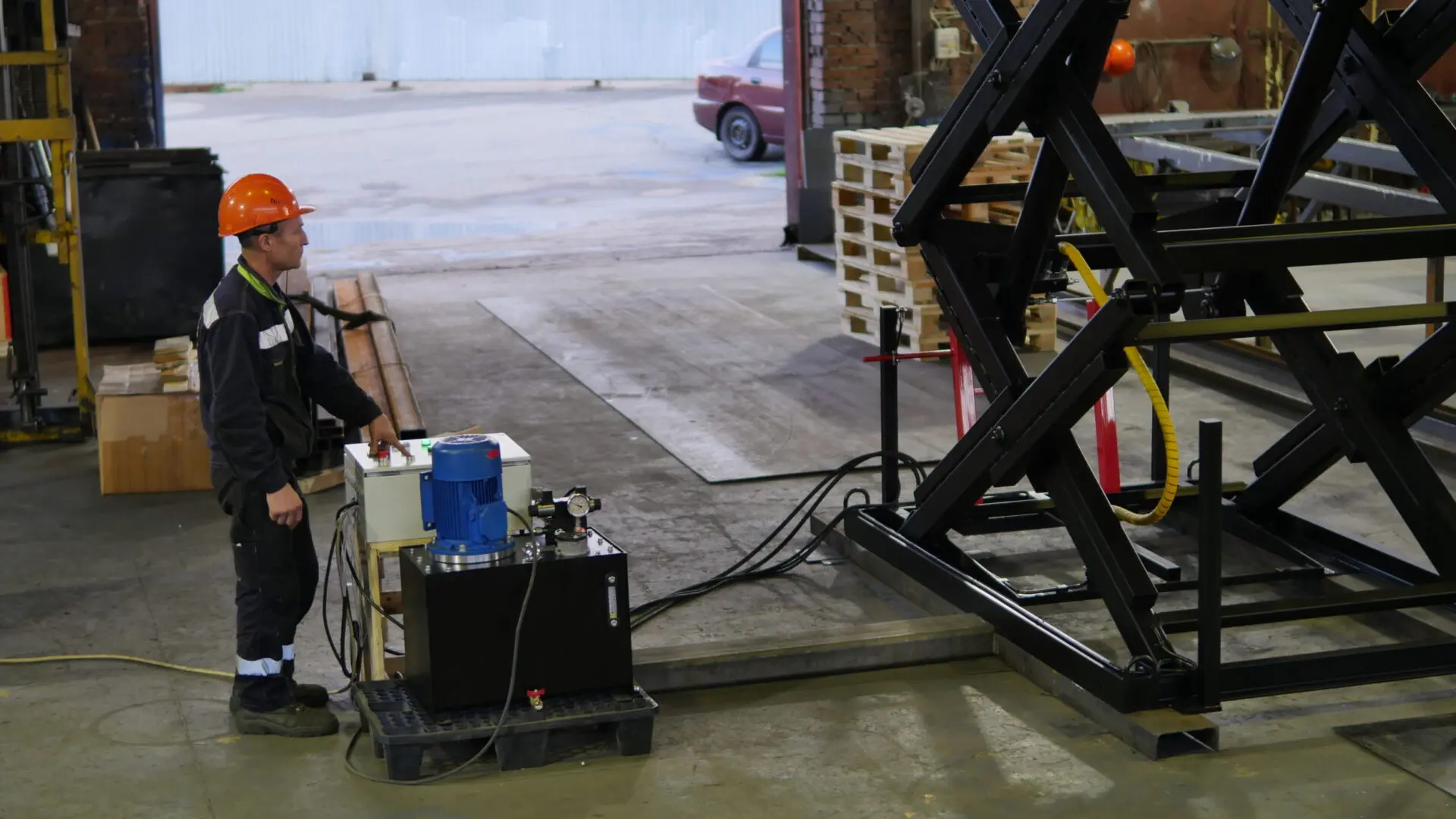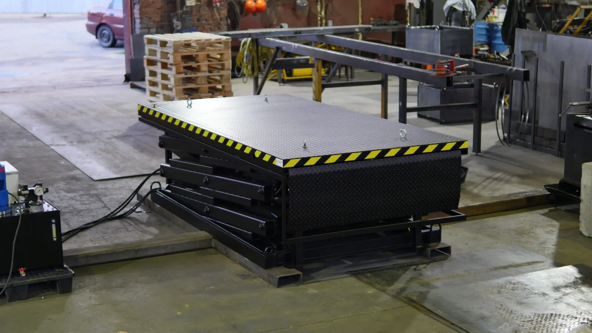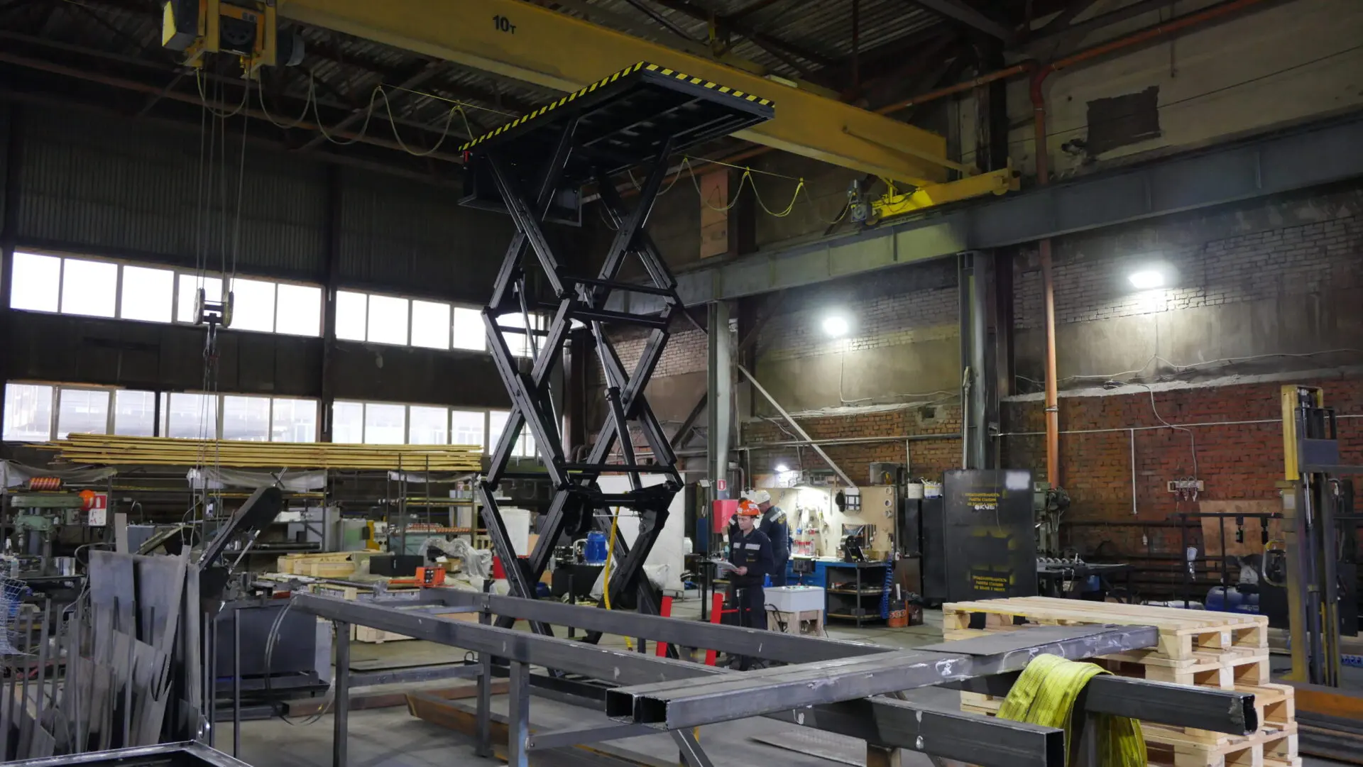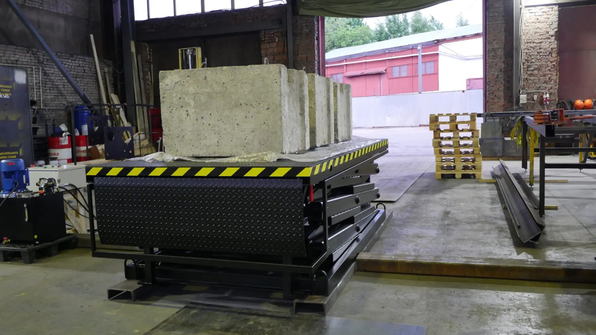 Рифлёная поверхность платформы подъемного стола способствует надежному сцеплению груза с поверхностью. Для удобства подъема верней крышки стол имеет рым-болты. Оборудование состоит из трех пар ножниц. Подъем осуществляется при помощи двух гидроцилиндров. Оси стола оборудованы масленкой. Максимальная грузоподъемность оборудования 3 тонны. Ножничный подъемник был испытан грузом 3 тонны 500 кг. Подъемный стол оборудован ремонтными опорами, которые надежно зафиксируют его во время обслуживания.