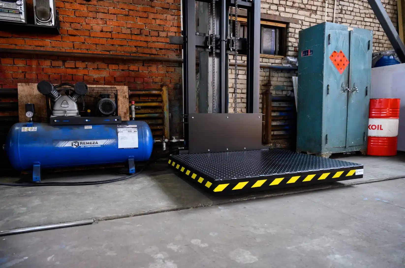 Высота подъема оборудования 2,5 метра, грузоподъемность 1 тонна. Подъемник был испытан весом, превышающим максимальную грузоподъемность на 40%.