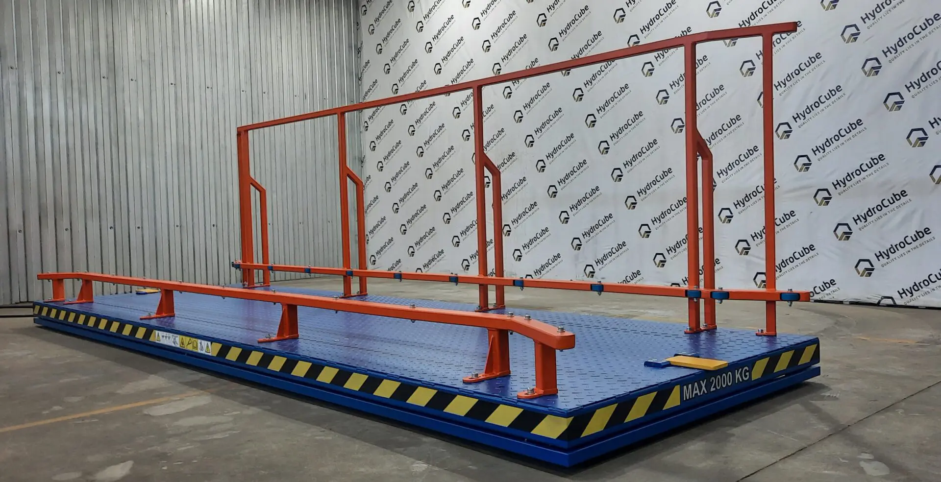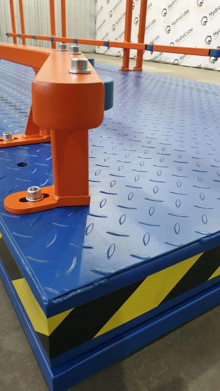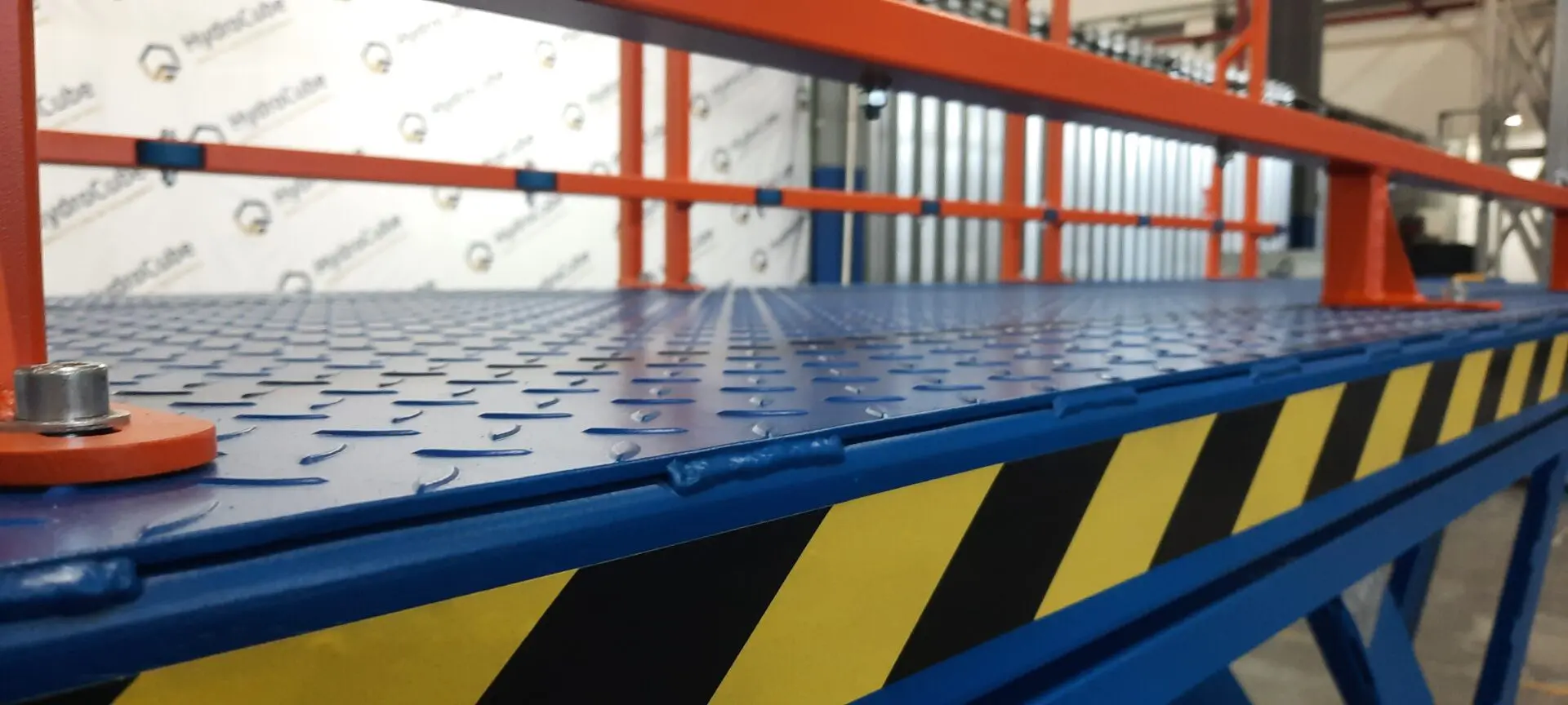Платформа оснащена механическими упорами и съемными ограждениями с роликами, что делает работу с подъемником более безопасной и комфортной.