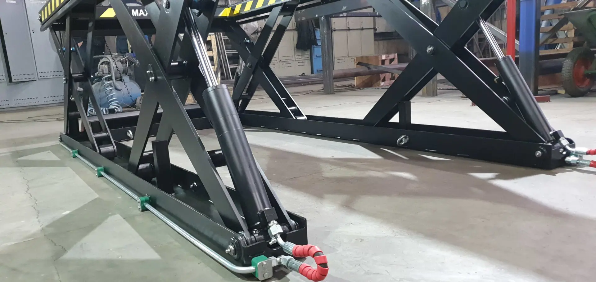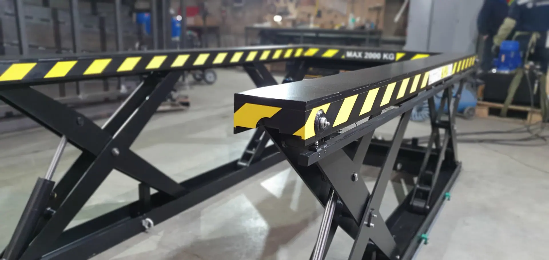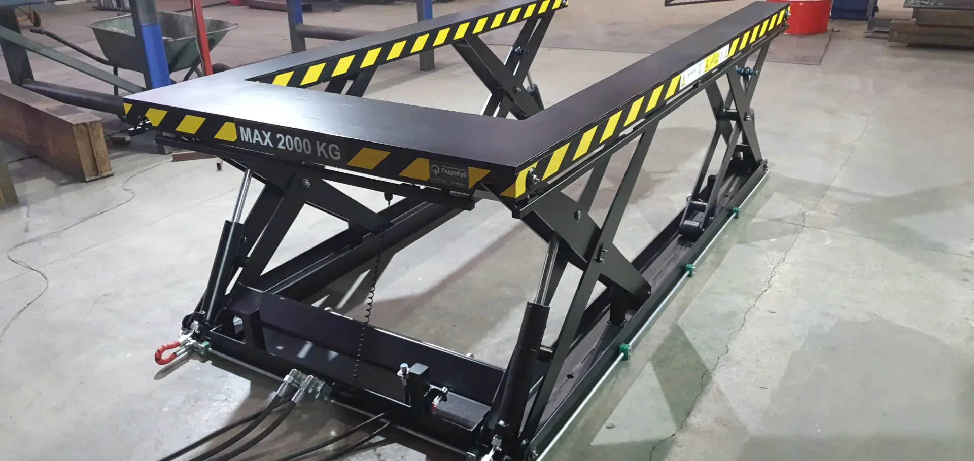 Высота в сложенном состоянии 200 мм. Грузоподъемность 2 тонны. Высота подъема 800 мм. Оси стола оборудованы масленкой. Оборудование было испытано весом превышающим максимальную грузоподъемность.